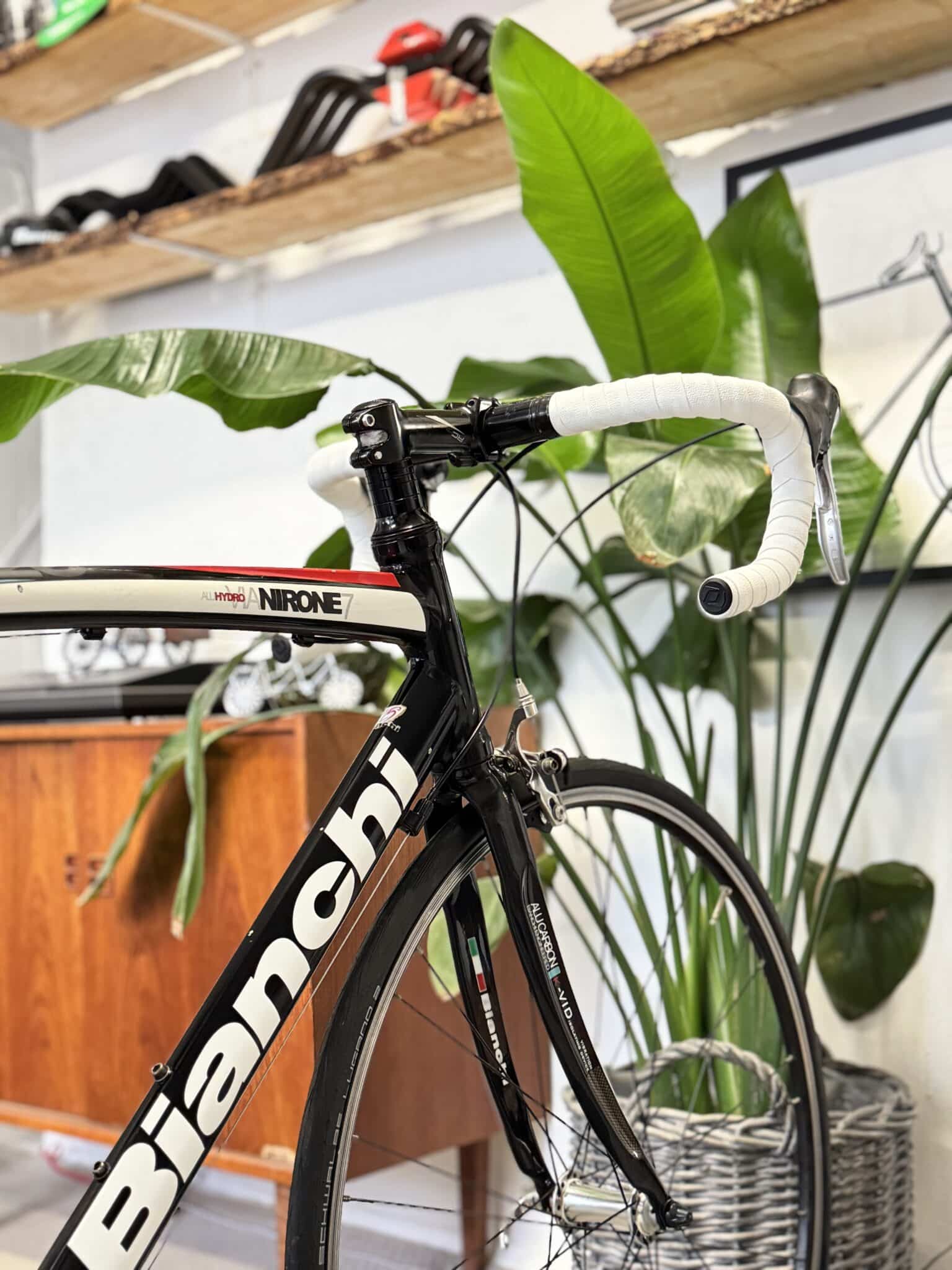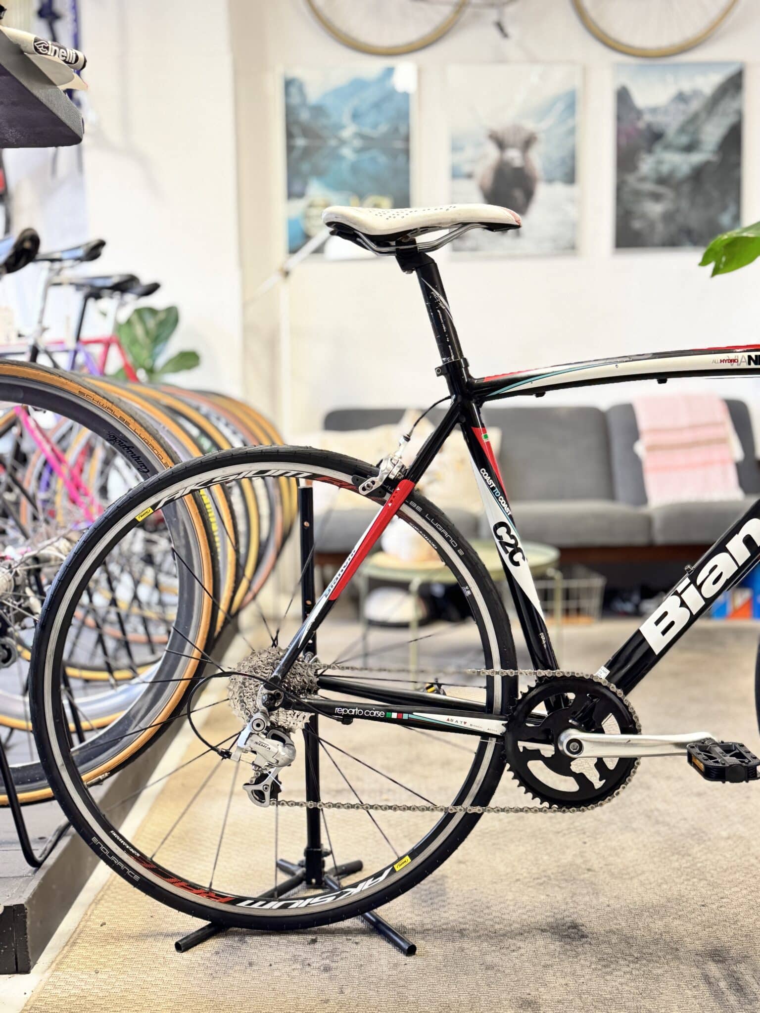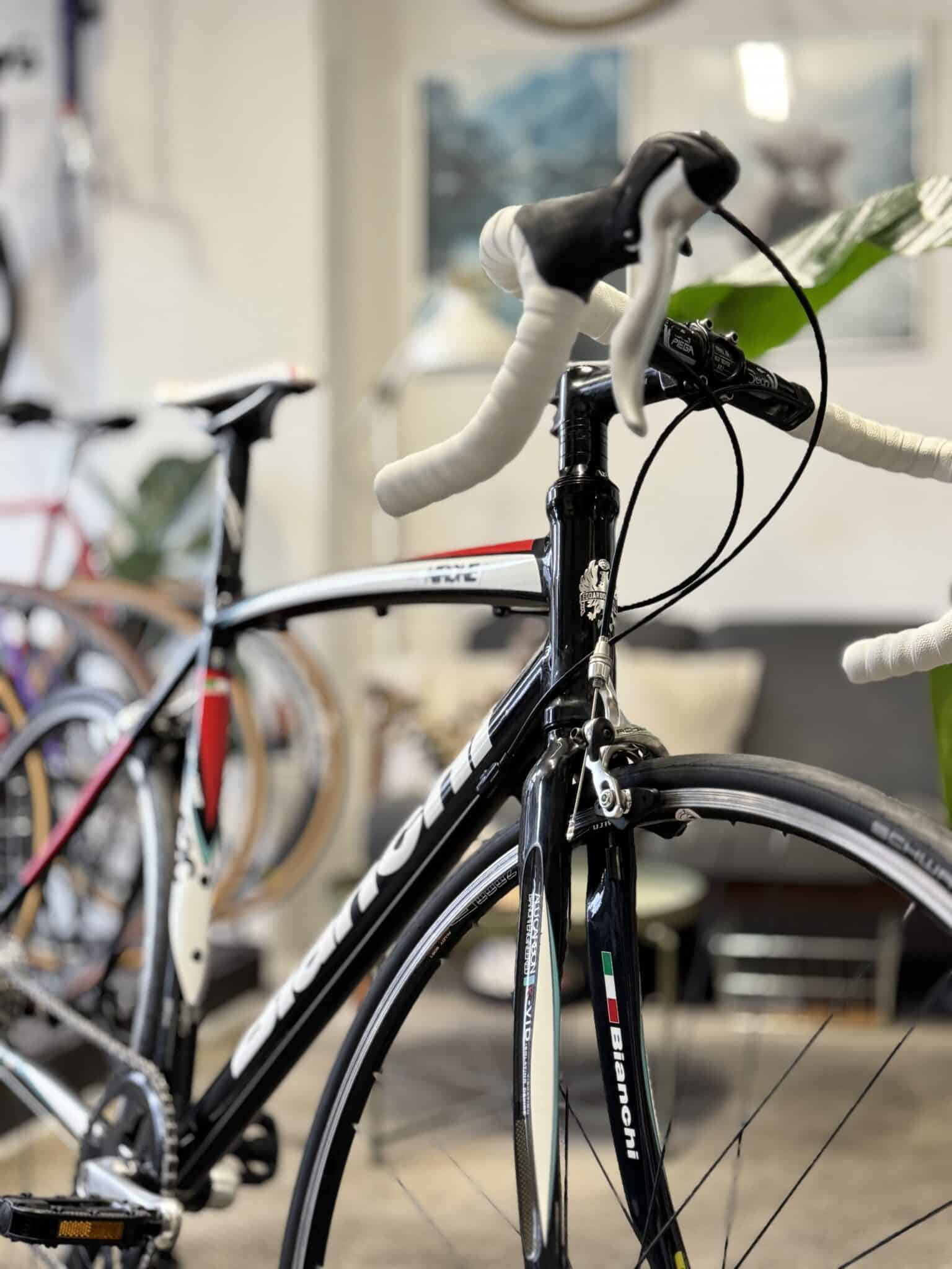 Fantastisk lækker racercykel fra ikoniske italienske Bianchi – let aluminium, klassisk attitude og et look, der bare rammer plet.