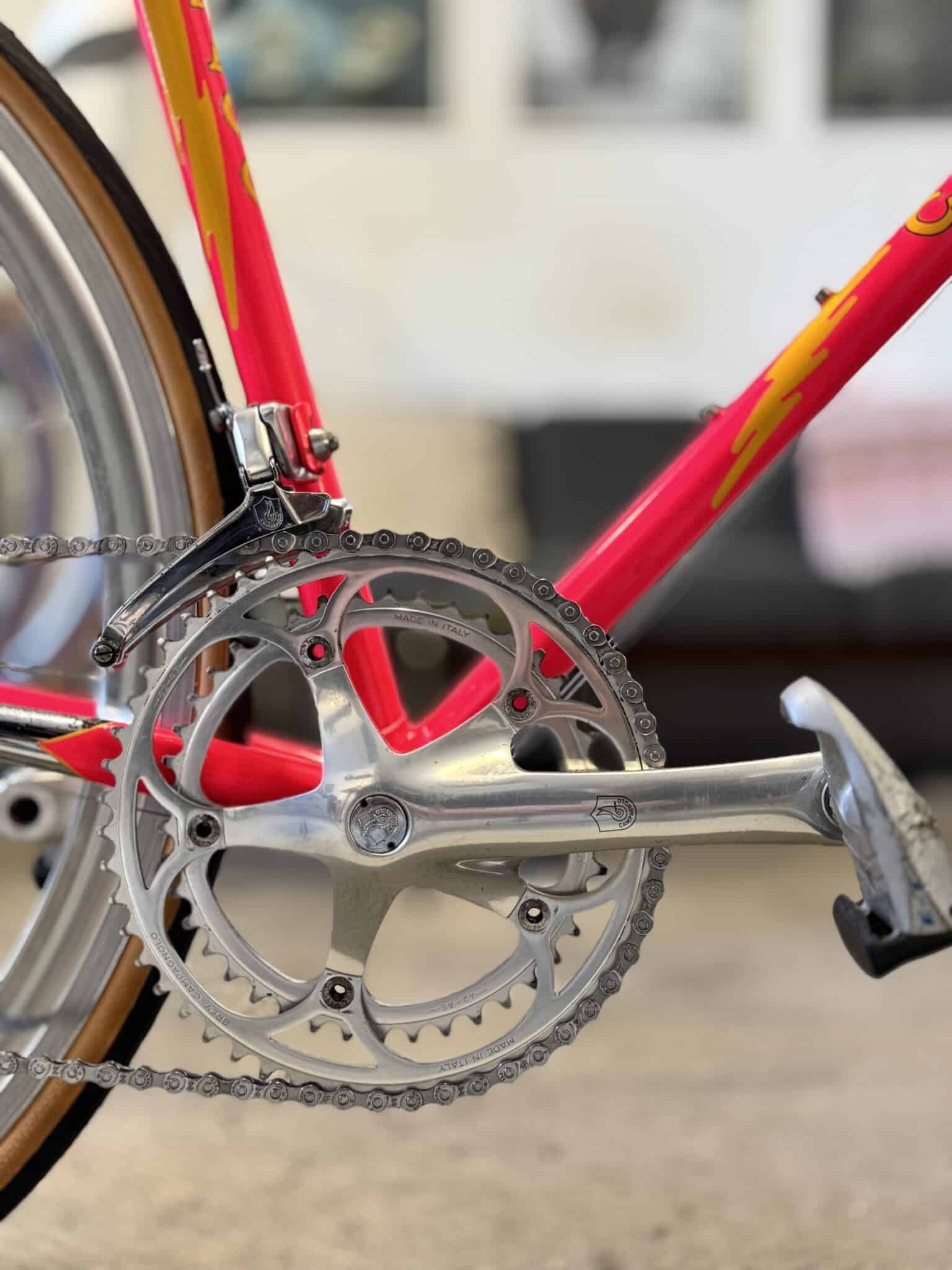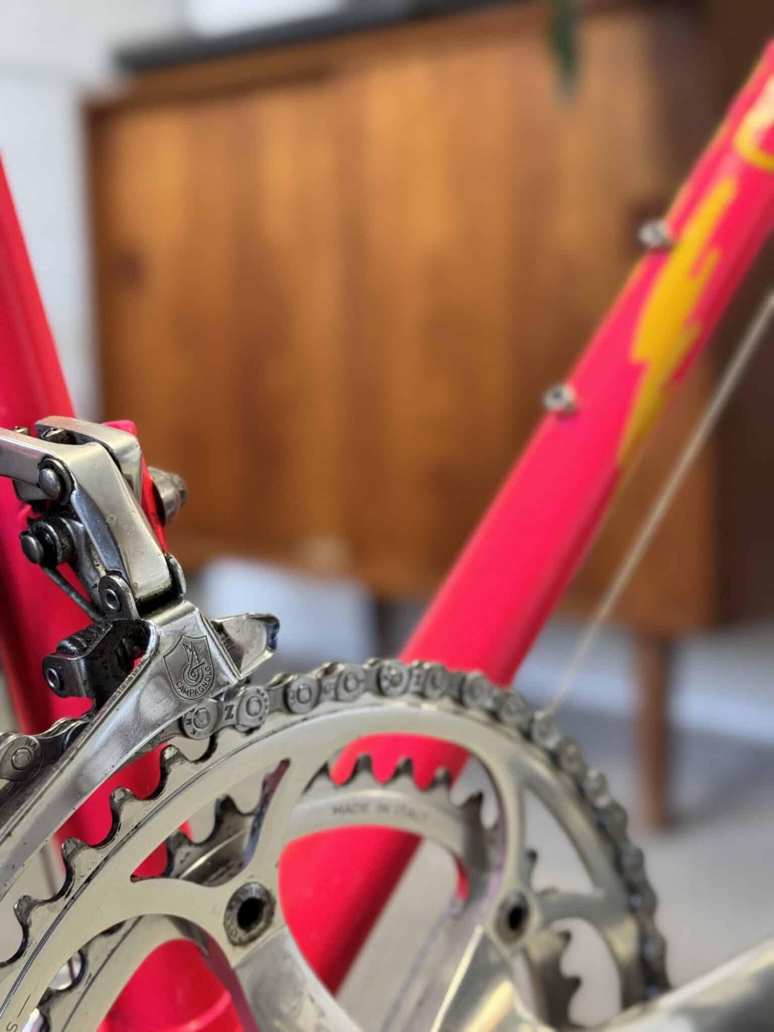 Du får 16 gear fra Campagnolo og generelt de fleste dele fra Campagnolo. (Kosmetisk står den rigtig flot, men er ikke perfekt i Chrome.)