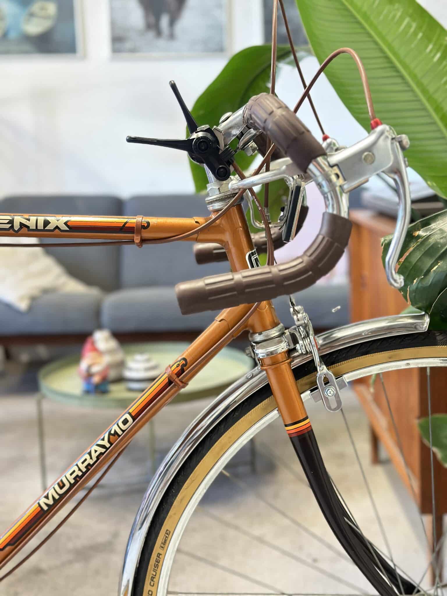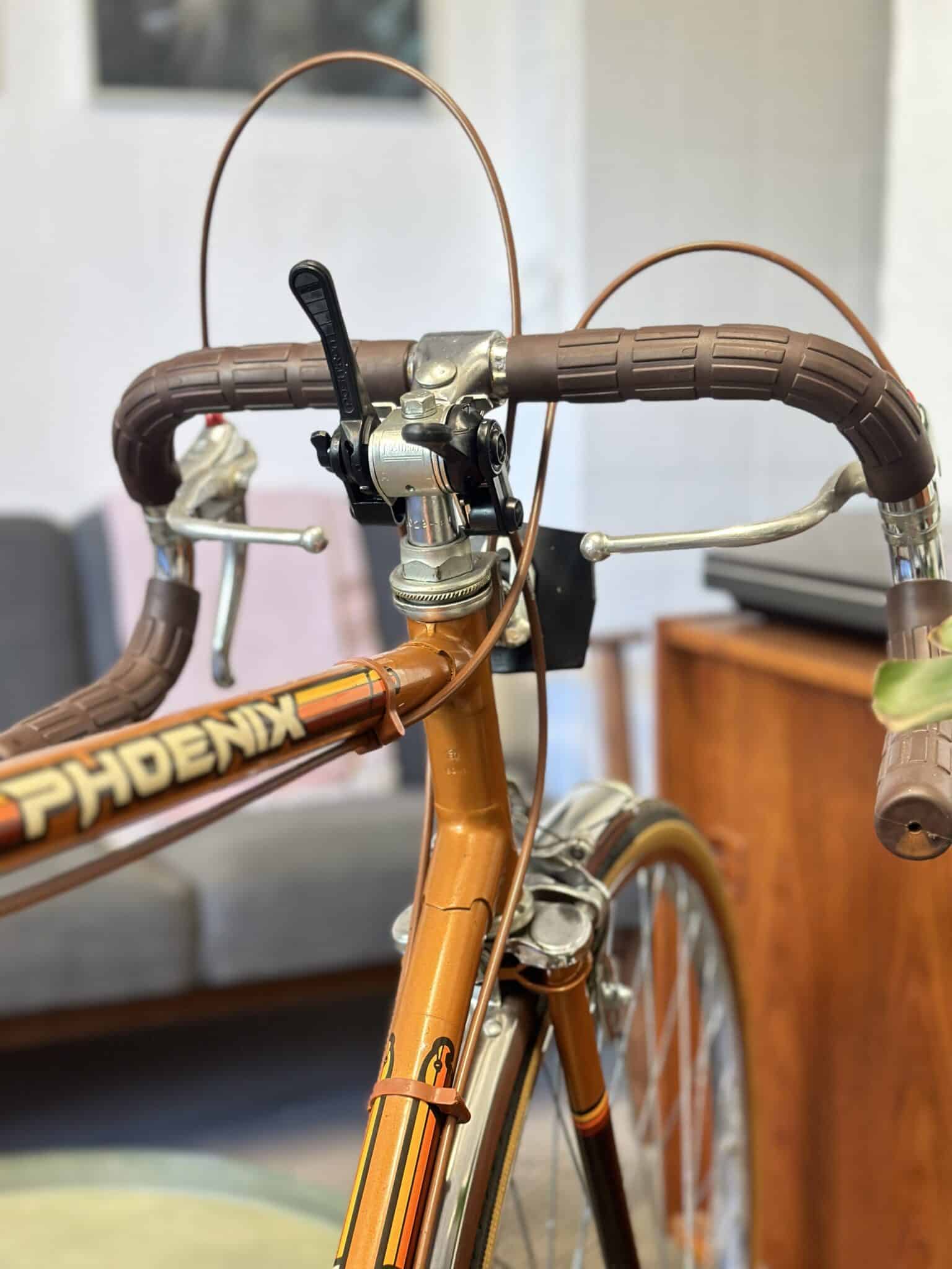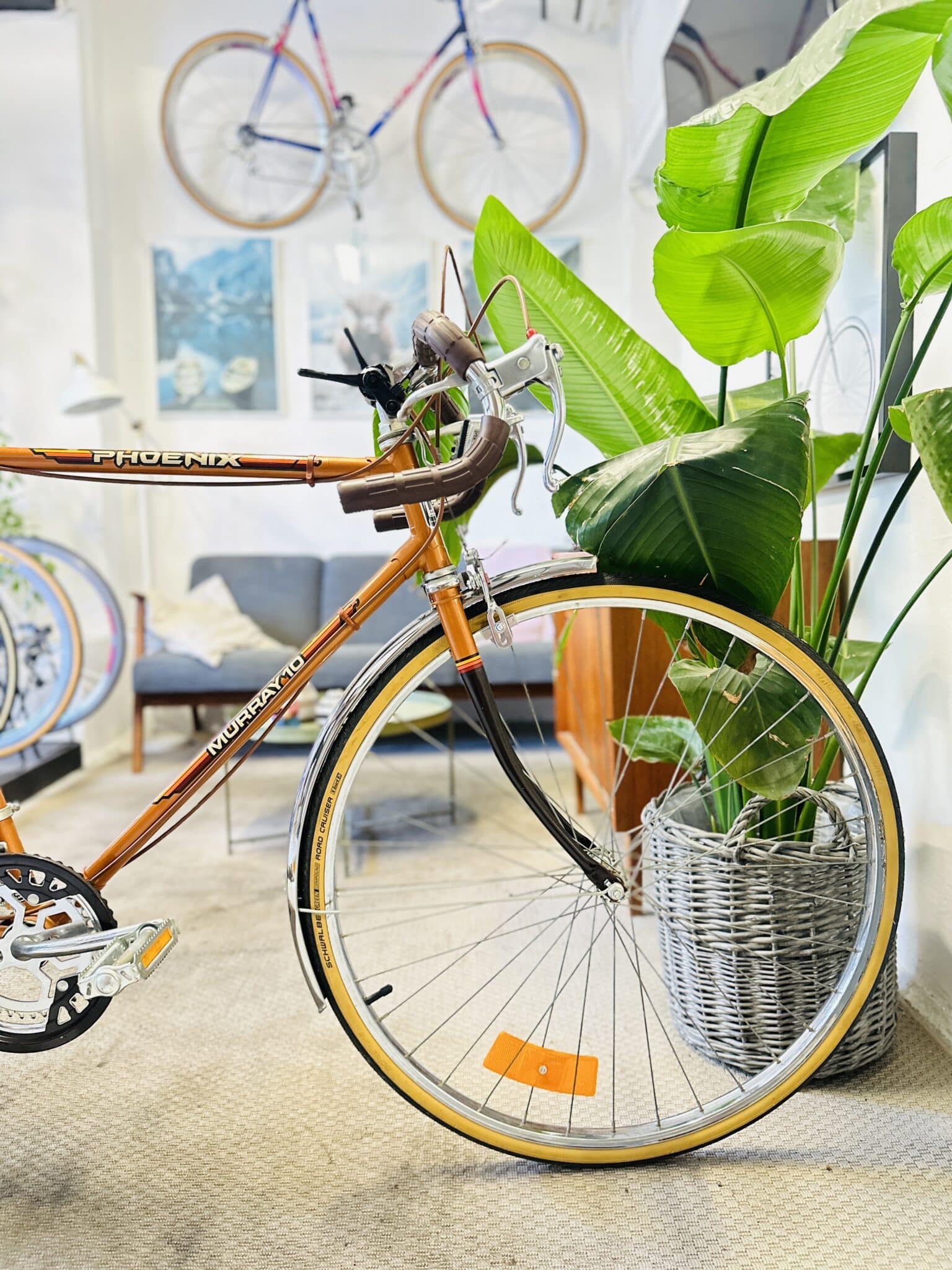 Phoenix Murray 10 er en smuk vintage racercykel fra 1980’erne, der fremstår i perfekt stand uden en eneste ridse. Cyklen er ikke bare en fryd for øjet med sin flotte metalliske orange/brune farve, men også en fantastisk repræsentant for Phoenix-mærkets kvalitet og håndværk. Alt på cyklen er originalt, hvilket gør den til en sjælden perle for samlere og cykelentusiaster.