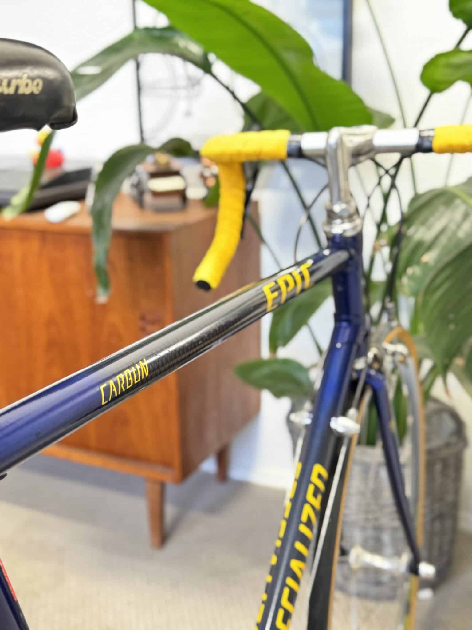 Specialized Epic carbon vintage – en let, stiv og unik racercykel, der uden tvivl vil skille sig ud på landevejen.