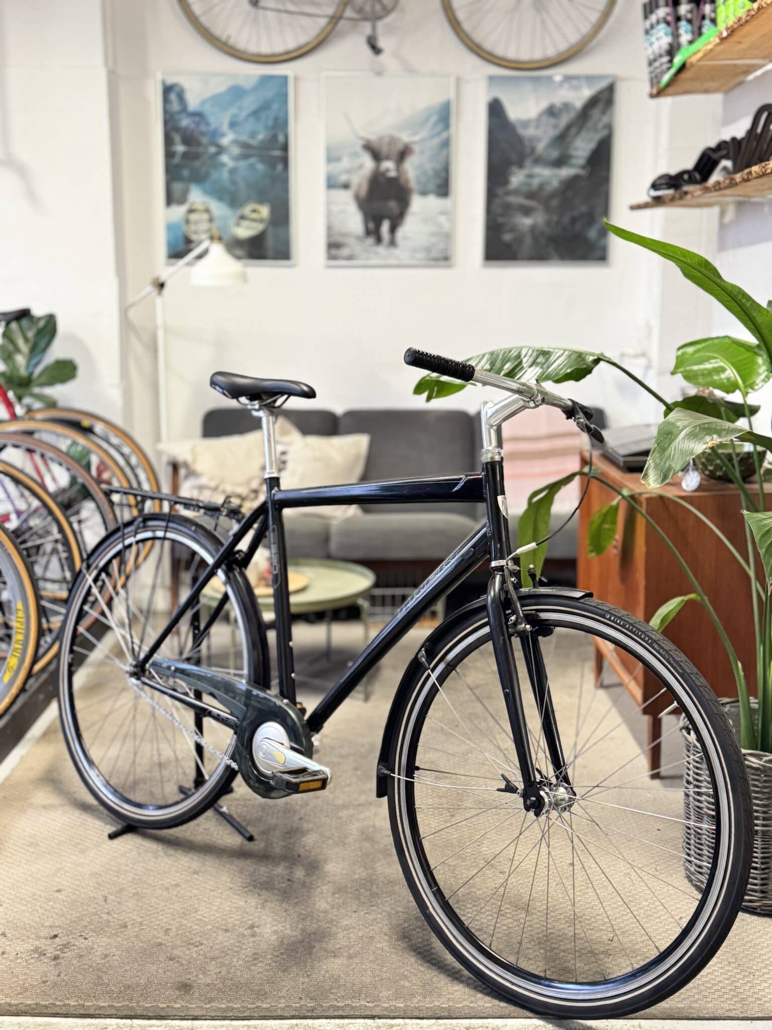 Ingen bøvl. Ingen unødige dikkedarer. Bare en gennemført stilren, klassisk herrecykel / citybike – præcis som en citybike bør være.