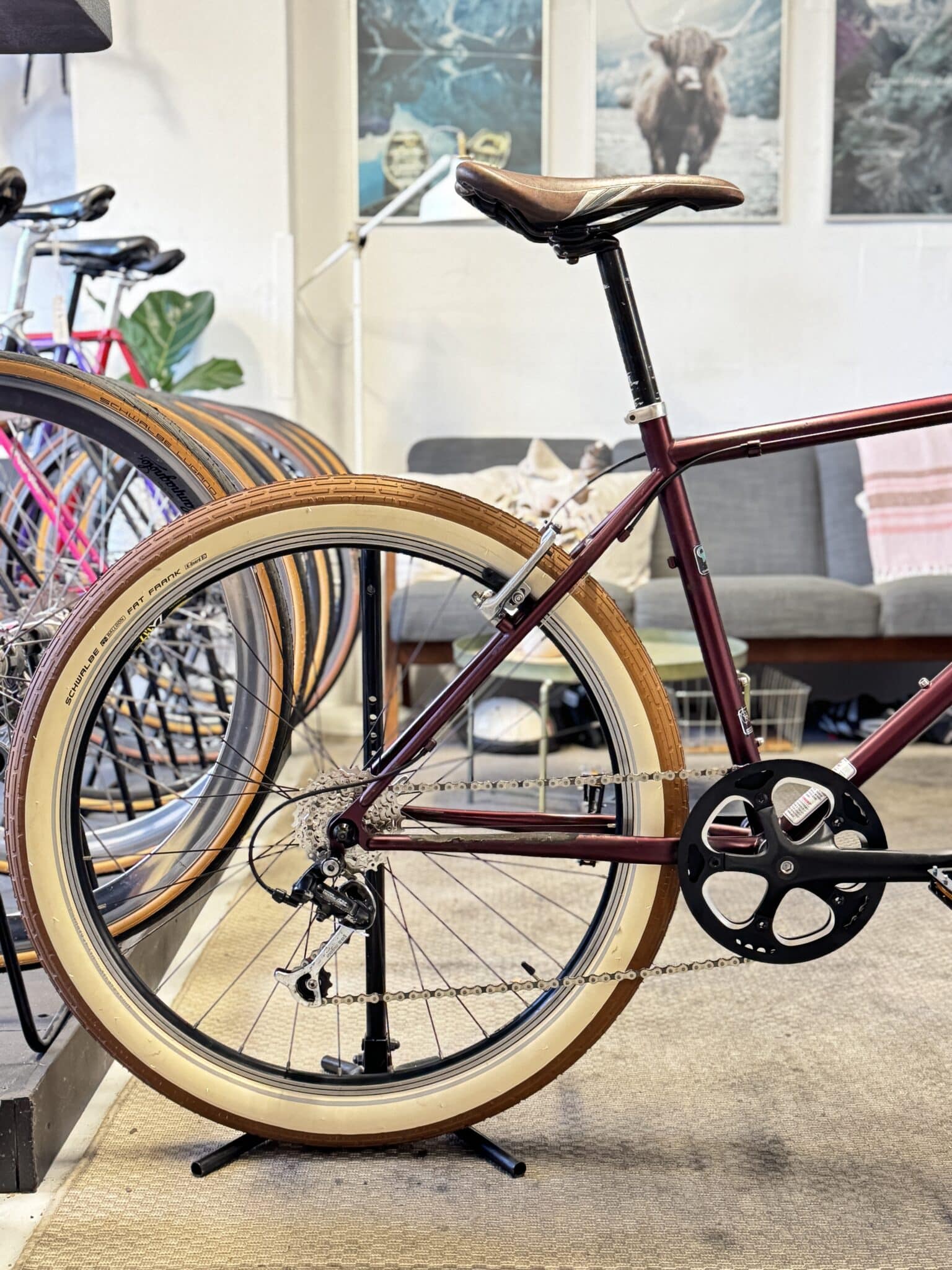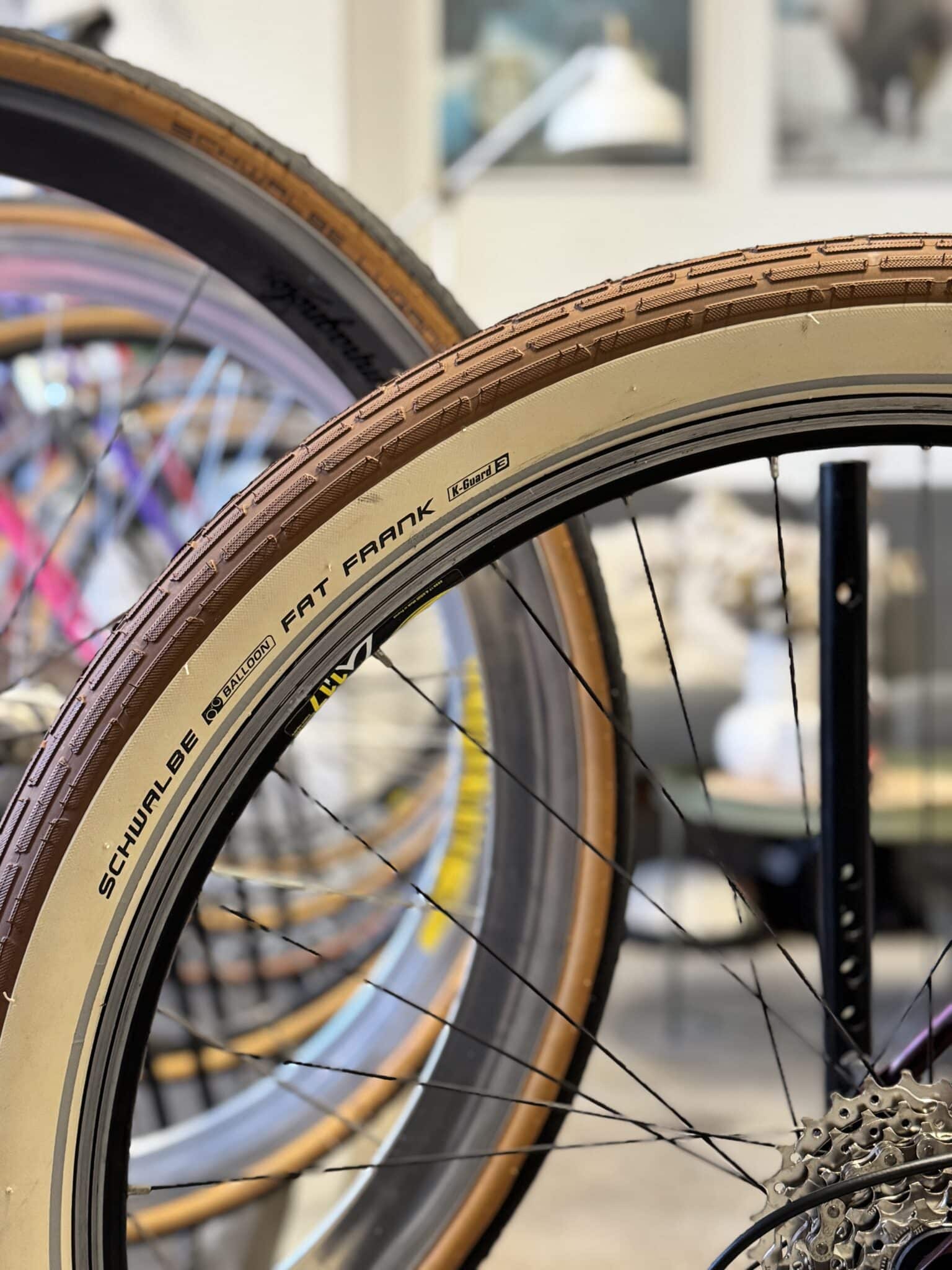 Og ja… du kan roligt regne med seriøs street credit! Vi har nemlig givet den et ekstra skud swagger med kæmpe 2.35” Schwalbe-dæk, der både ser brutale ud og æder byens huller uden at blinke.