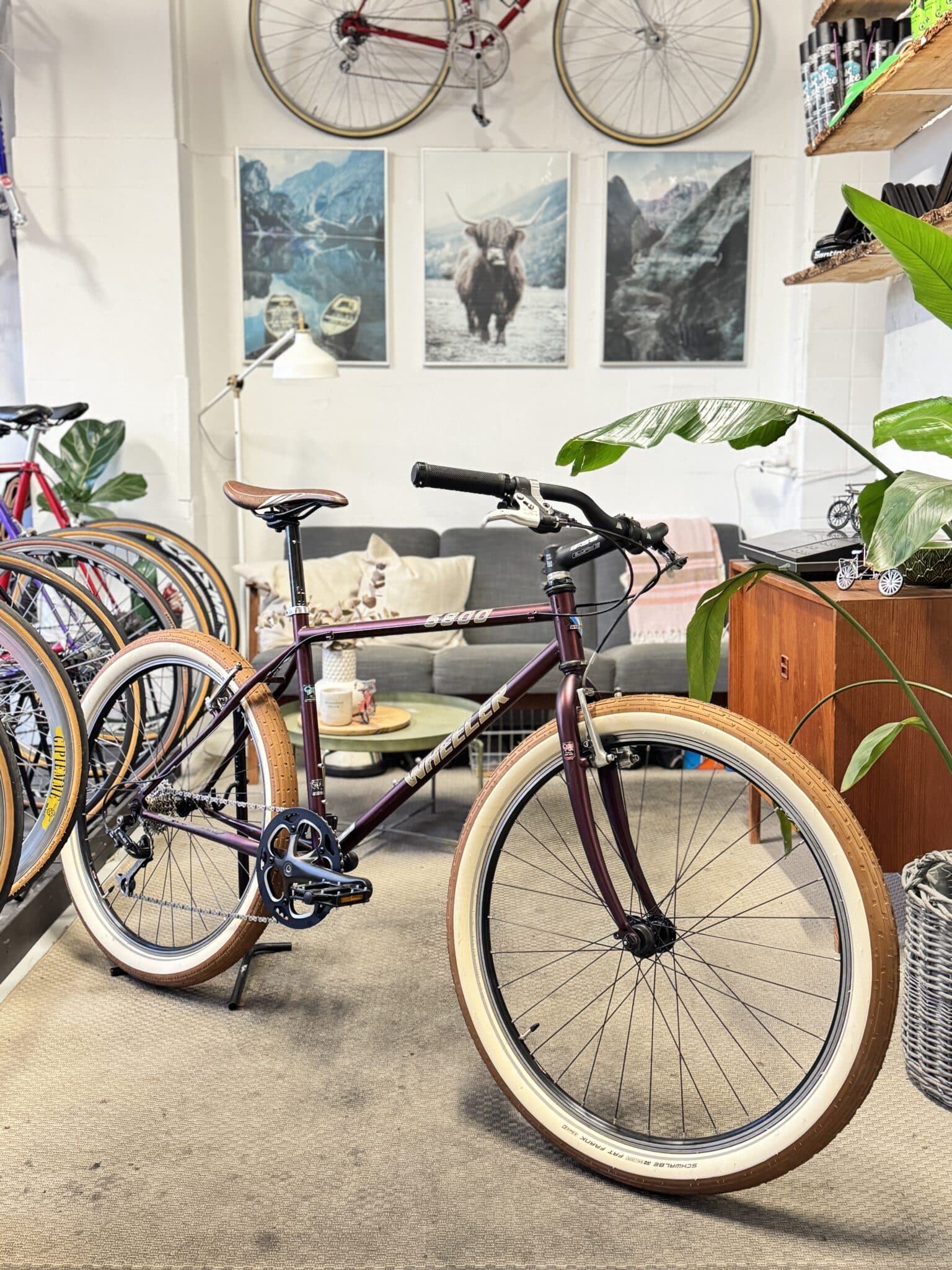 Indbegrebet af bad ass! Her får du en ægte vintage mountainbike fra schweiziske Wheeler, ombygget til den ultimative byhævner – klar til at dominere cykelstierne og tage enhver udfordring med et smil. Det her er stål med sjæl, karakter og alt det rå udtryk, som kun en oldschool MTB kan levere.